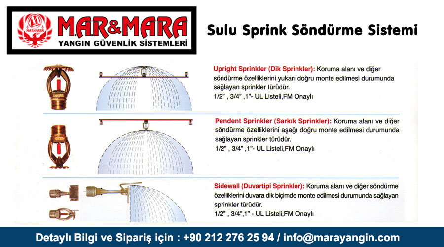 Duvartipi Sprinler : Koruma Alanı ve diğer söndürme özelliklerinin duvara dik monte edilmesi durumunda söndürme işlemi sağlayan sprink türüdür.